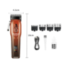 Επαναφορτιζόμενη κουρευτική μηχανή. Kατάλληλη για χρήση σε περιοχές όπως τα μαλλιά, τα γενιά και το σώμα. Λειτουργεί με μπαταρία 2000mAh. Χρόνος φόρτισης 3 ώρες. Αυτονομία 180 λεπτά. Διαθέτει 4 χτενάκια. Ισχύς 5W.