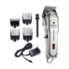 Επαγγελματική κουρευτική μηχανή. Kατάλληλη για χρήση σε περιοχές όπως τα μαλλιά, τα γενιά και το σώμα. Λειτουργεί με μπαταρία 2000mA. Χρόνος πλήρης φόρτισης 1.5 ώρες. Αυτονομία 210 λεπτά. Διαθέτει 4 χτενάκια για μήκος κοπής από 3/6/10/13mm. Διαστάσεις 18x4cm.
