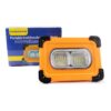 Επαναφορτιζόμενος φακός εργασίας με ενσωματωμένο ηλιακό πάνελ για έξτρα αυτονομία μπαταρίας, ισχυρό φωτισμό με ρυθμίσεις και εργονομική βάση στήριξης, ιδανικός για χρήση σε εξωτερικές δραστηριότητες, χόμπυ και εργασία.