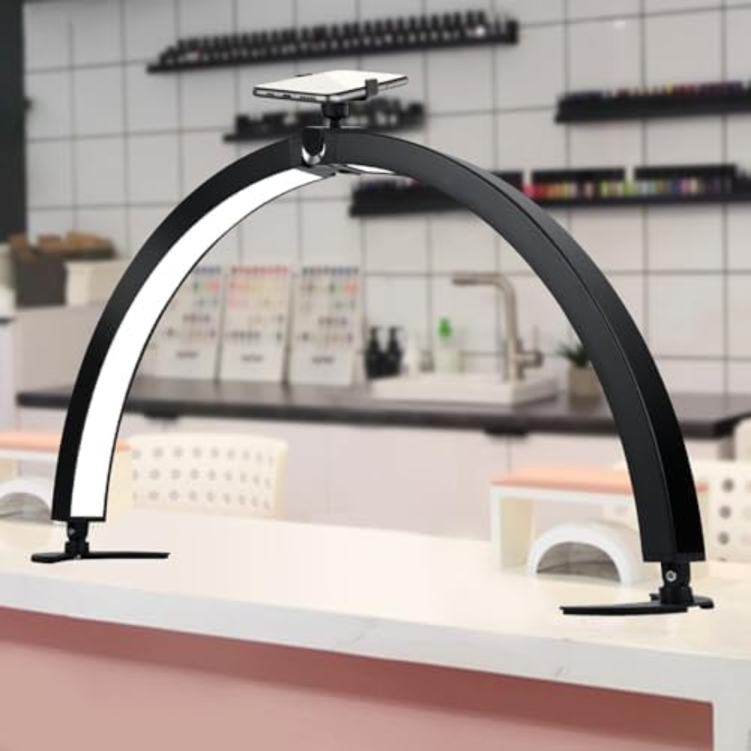 Επιτραπέζιο led φωτιστικό. Διαθέτει επιλογή 2 διαφορετικών φωτισμών. Αποτελεί ιδανικό προϊόν για αισθητικούς, tattoo artists αλλά και για οποιονδήποτε χρειάζεται τον τέλειο φωτισμό στον χώρο του. Ιδανικό για φωτογραφίσεις και video. Διαθέτει βάση για το κινητό. Διαστάσεις 56x31x4cm.