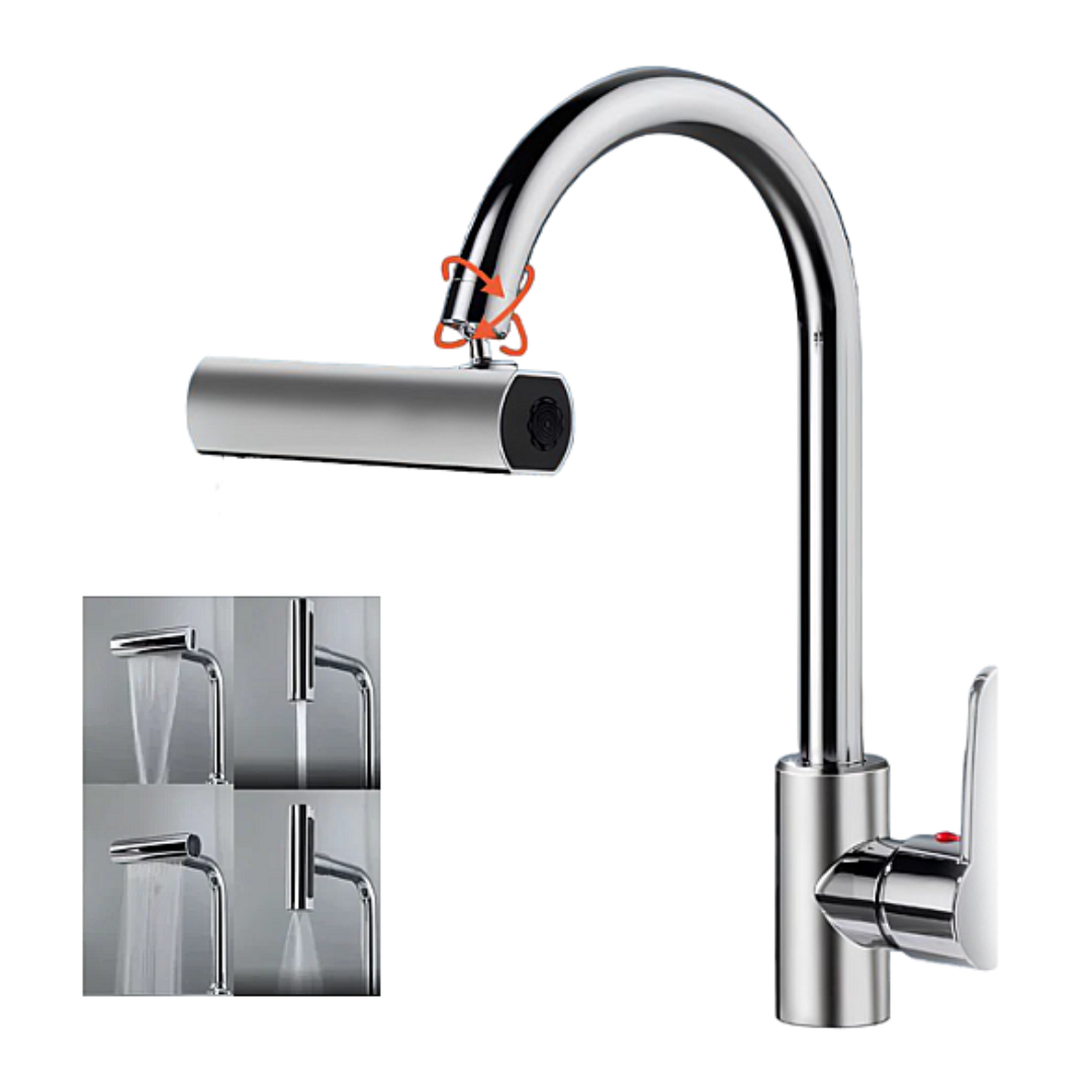 Εύκαμπτη προέκταση βρύσης. Με αυτό το ακροφύσιο εκτός από εξοικονόμηση νερού θα μπορείτε πλέον να ξεπλένετε τον νιπτήρα σας. Υψηλής ποιότητας, με εργονομικό σχεδιασμό για μεγάλη ευκολία χρήσης. Είναι πλήρως περιστρεφόμενη στο επίπεδο των 360 μοιρών. Διαθέτει 4 διαφορετικές χρήσης.