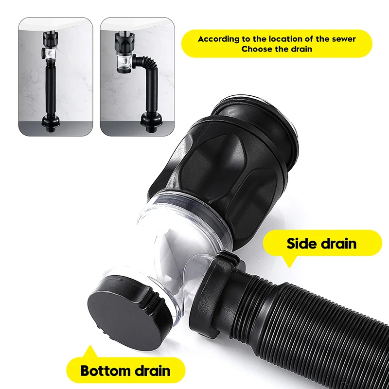 Εύκαμπτο πλαστικό σιφώνι, με βαλβίδα από χαλκό και καπάκι με μηχανισμό pop up, κατάλληλο για νιπτήρες μπάνιου ή κουζίνας. Εξοπλίζεται με δοχείο stopper το οποίο είναι σχεδιασμένο να συγκρατεί τις τρίχες, αποτρέποντας το φράξιμο του σωλήνα, ενώ, διαθέτει και 2 εξόδους διοχέτευσης του νερού (προς τα κάτω & προς το πλάι) για την ιδανική τοποθέτηση σύμφωνα με την διαρρύθμιση του χώρου σας.