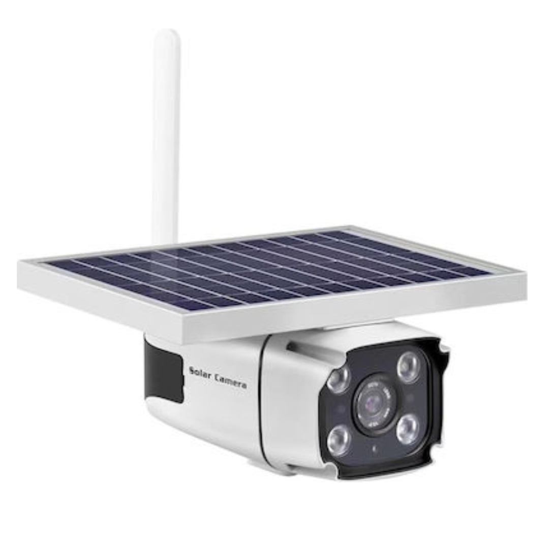 Ηλιακή κάμερα ασφαλείας/παρακολούθησης WiFi εξωτερικού χώρου. Με εξαιρετική ποιότητα εικόνας 1080P. Διαθέτει ανιχνευτή κίνησης, νυχτερινή λήψη, αμφίδρομη επικοινωνία ήχου και βάση στήριξης για τον τοίχο ή την οροφή. Μπορεί να χρησιμοποιηθεί σε εσωτερικό και εξωτερικό χώρο, διαθέτει εφαρμογή- App στο κινητό ή το tablet και σας ειδοποιεί μόλις ανιχνεύσει κίνηση. Είναι εφοδιασμένη με φώτα led υπερύθρων έτσι ώστε να είναι δυνατή η καταγραφή της εικόνας σε απόλυτο σκοτάδι. Εμβέλεια 10m. Έχει μικρόφωνο, θύρα κάρτας SD και κάρτα Sim. Φακός 3.6mm.