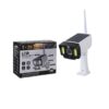 Επιτοίχιος ηλιακός προβολέας LED COB με αισθητήρα κίνησης και σχεδιασμό κάμερας ασφαλείας.