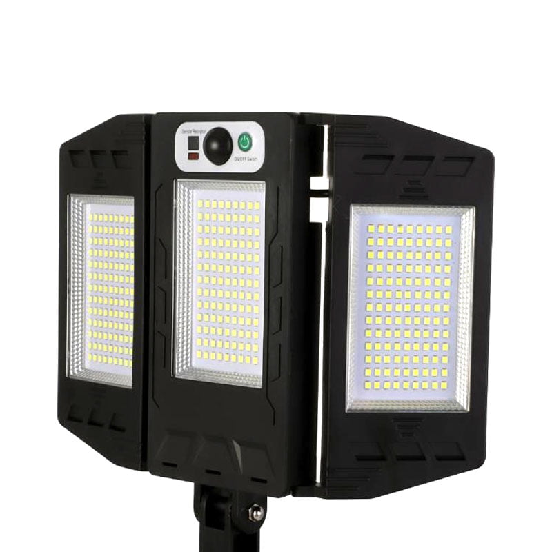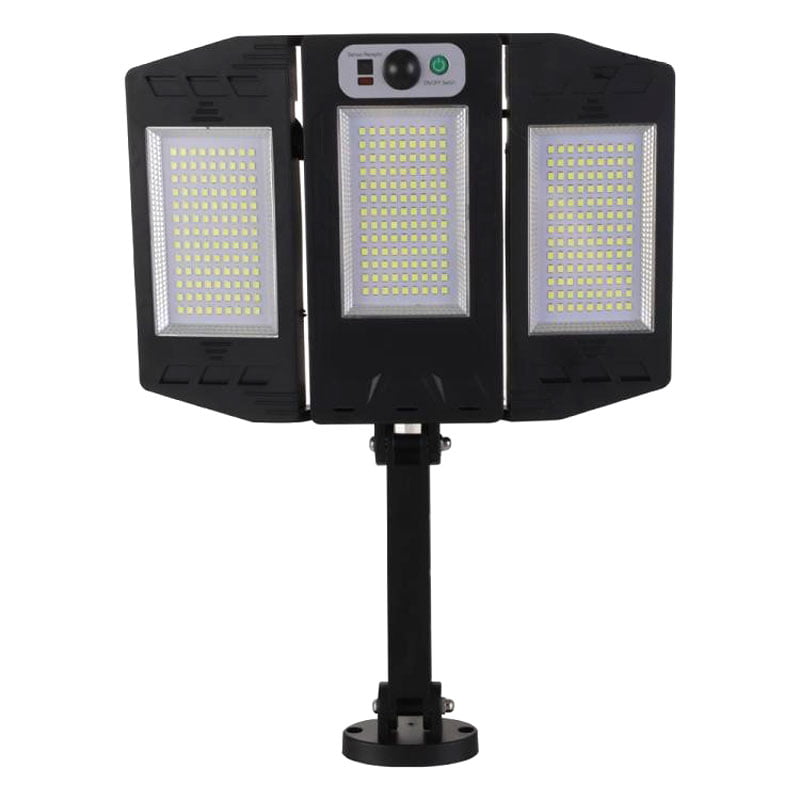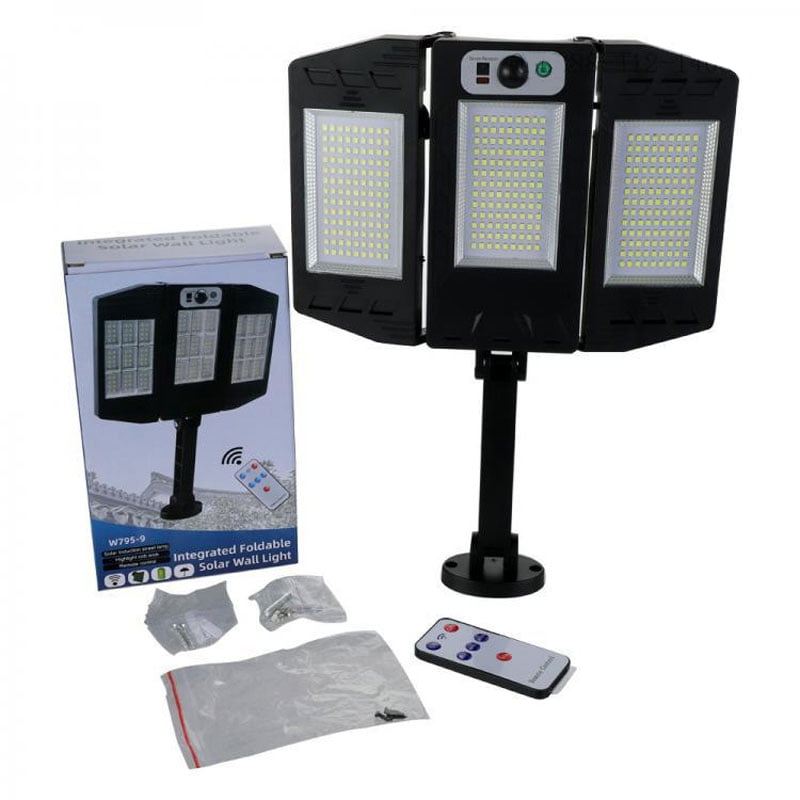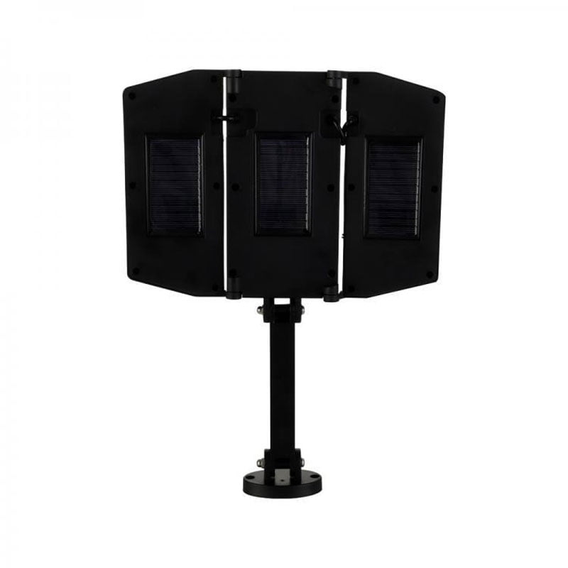 Επιτοίχιο ηλιακό φωτιστικό σε μαύρο χρώμα, που συγκεντρώνει και αποθηκεύει ηλιακή ενέργεια για τη λειτουργία του, ώστε να μη χρειάζεται να συνδεθεί σε παροχή ρεύματος.