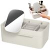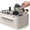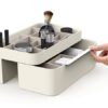Επιτραπέζια βάση οργάνωσης καλλυντικών και μπιζού, με ενσωματωμένο καθρέπτη, συρτάρι και πολλαπλές θήκες οργάνωσης, με εργονομική σχεδίαση εξοικονόμησης χώρου.