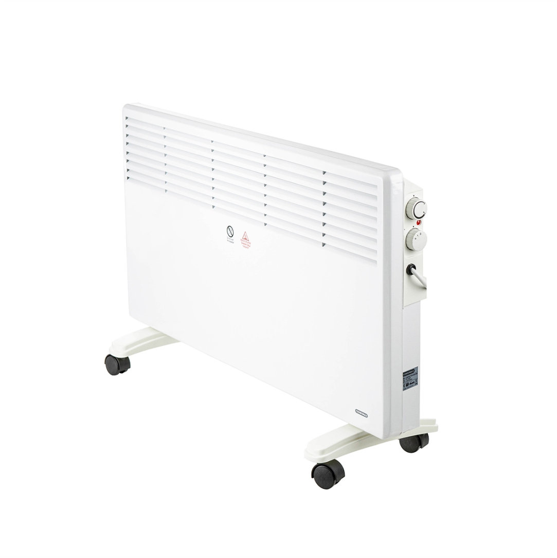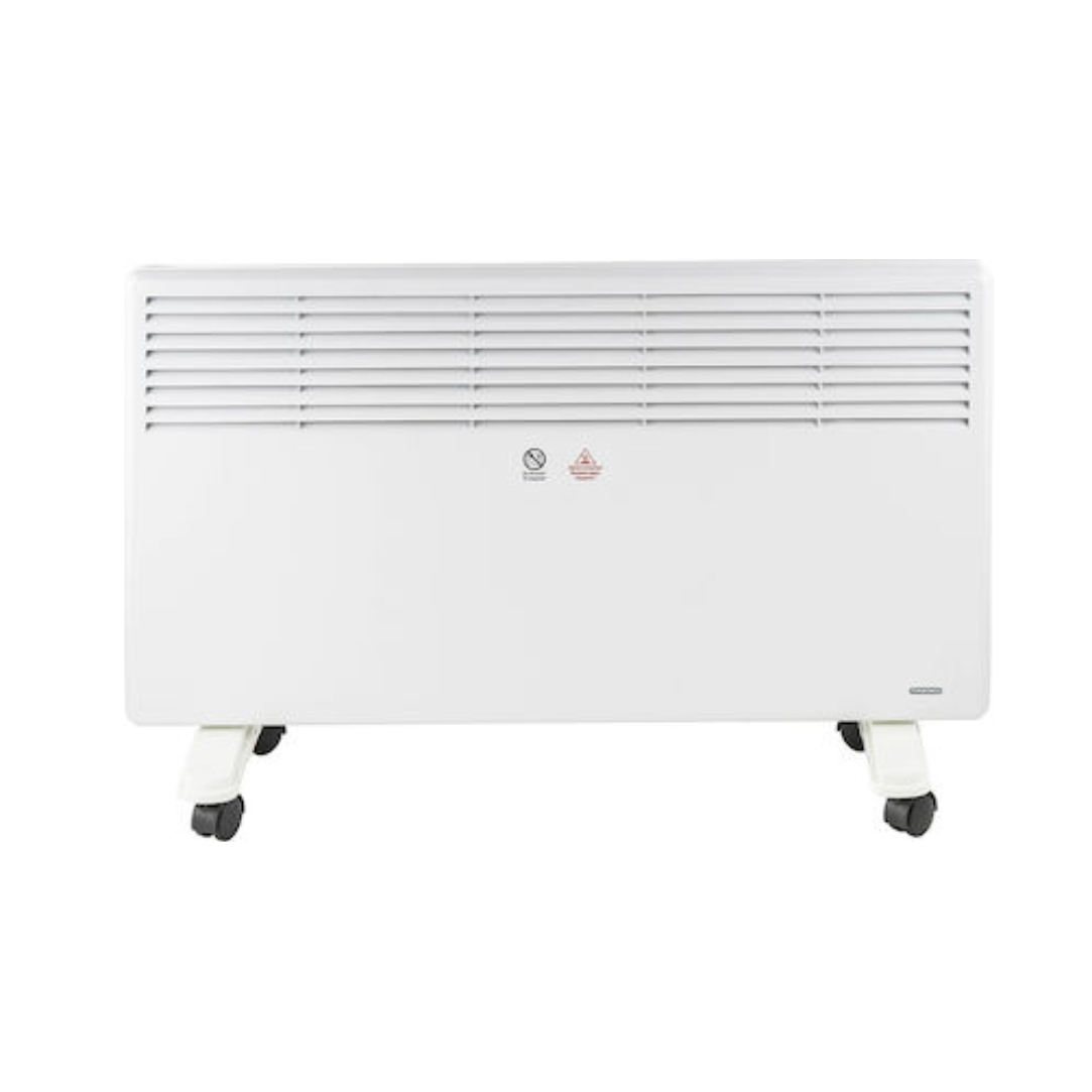 Θερμοπομπός δαπέδου. Με ισχύ 1500W. Αποτελεί μία πολύ καλή λύση για να καλύψει άμεσα τις ανάγκες θέρμανσης ενός χώρου έως και 12m². Η λειτουργία του είναι αθόρυβη. Διαθέτει ρυθμιζόμενο αναλογικό θερμοστάτη που σας επιτρέπει να προσαρμόζετε ή να διατηρείτε σταθερή στα επιθυμητά επίπεδα τη θερμοκρασία του χώρου. Μετακινείται εύκολα παντού, με τα ροδάκια. Αδιαβροχοποίηση IP24. Διαστάσεις 50×65,5x12cm.