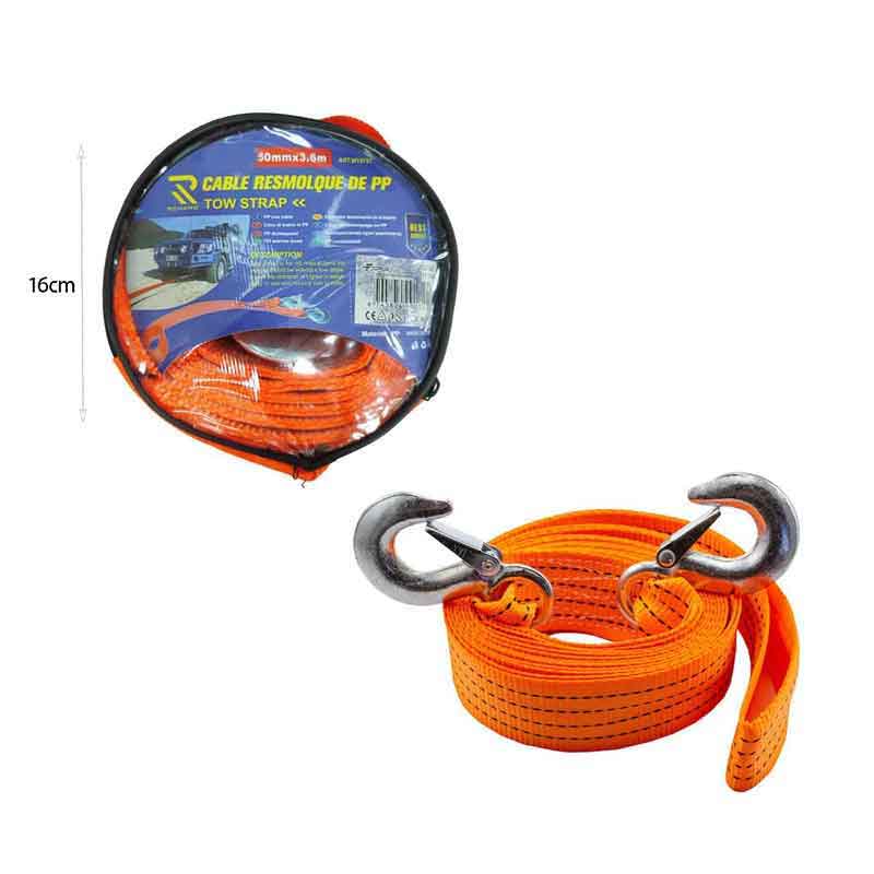 Ανθεκτικός ιμάντας ρυμούλκησης με αντοχή έως 5 τόνους, ιδανικός για την ασφάλεια και την υποστήριξη σε περιπτώσεις έκτακτης ανάγκης στον δρόμο. Διαθέτει μεταλλικούς γάντζους βαρέως τύπου με ασφάλεια για σταθερή σύνδεση μεταξύ οχημάτων.