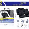Πλήρες σετ που περιλαμβάνει κάλυμμα για τα 2 μπροστινά καθίσματα, ενιαίο κάλυμμα για το πίσω κάθισμα και καλύμματα για τα μαξιλαράκια κεφαλής.