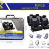 Universal καλύμματα αυτοκινήτου, από υψηλής ποιότητας και ανθεκτικότητας υλικό που τοποθετείται και καθαρίζεται εύκολα. Πλήρες σετ που περιλαμβάνει κάλυμμα για τα 2 μπροστινά καθίσματα, ενιαίο κάλυμμα για το πίσω κάθισμα και καλύμματα για τα μαξιλαράκια κεφαλής. Ευέλικτος και κομψός σχεδιασμός που ταιριάζει σε όλα τα αυτοκίνητα. Υψηλή αντοχή στη φθορά. Εύκολη τοποθέτηση. Διαστάσεις συσκευασίας: 32 x 27 cm