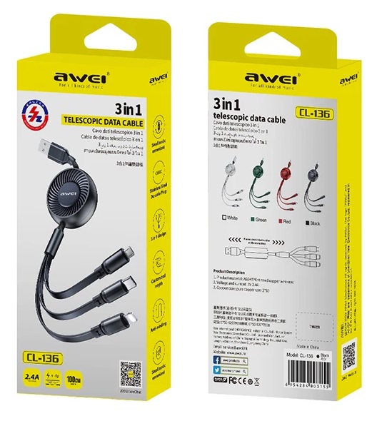 Καλώδιο φόρτισης & data 3in1 – Πτυσσόμενο – CL-136 – AWEI – 887714