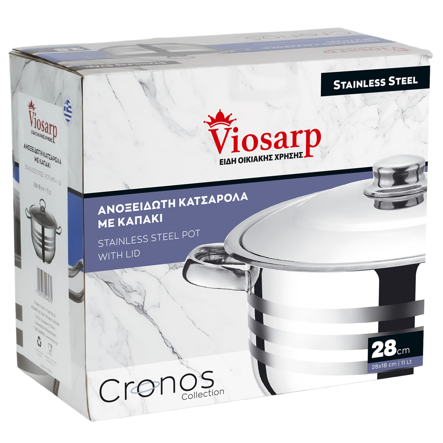 ΚΑΤΣΑΡΟΛΑ ΑΝΟΞΕΙΔΩΤΗ ΜΕ ΑΝΟΞΕΙΔΩΤΟ ΚΑΠΑΚΙ 28x18cm 11L VIOSARP