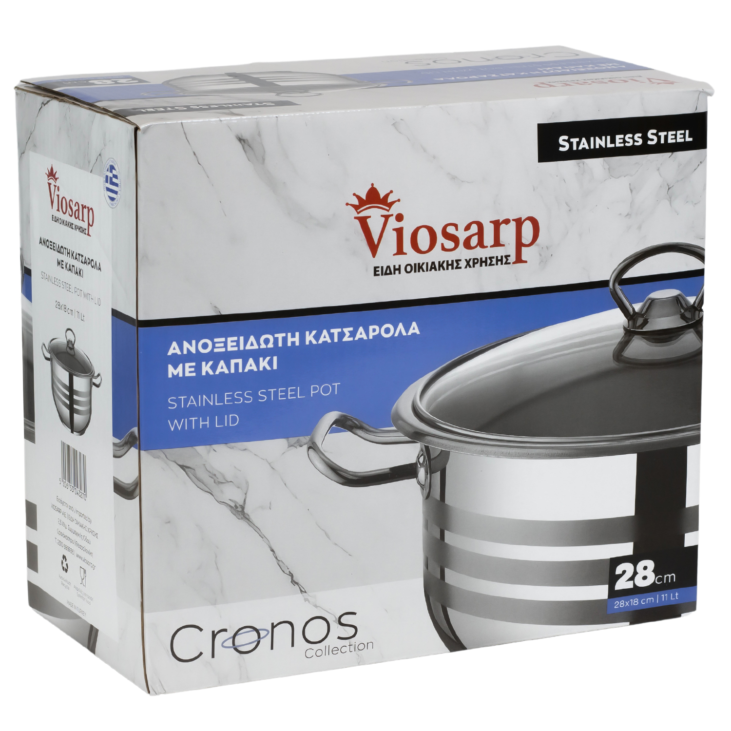 ΚΑΤΣΑΡΟΛΑ ΑΝΟΞΕΙΔΩΤΗ ΜΕ ΓΥΑΛΙΝΟ ΚΑΠΑΚΙ 28x18cm 11L VIOSARP