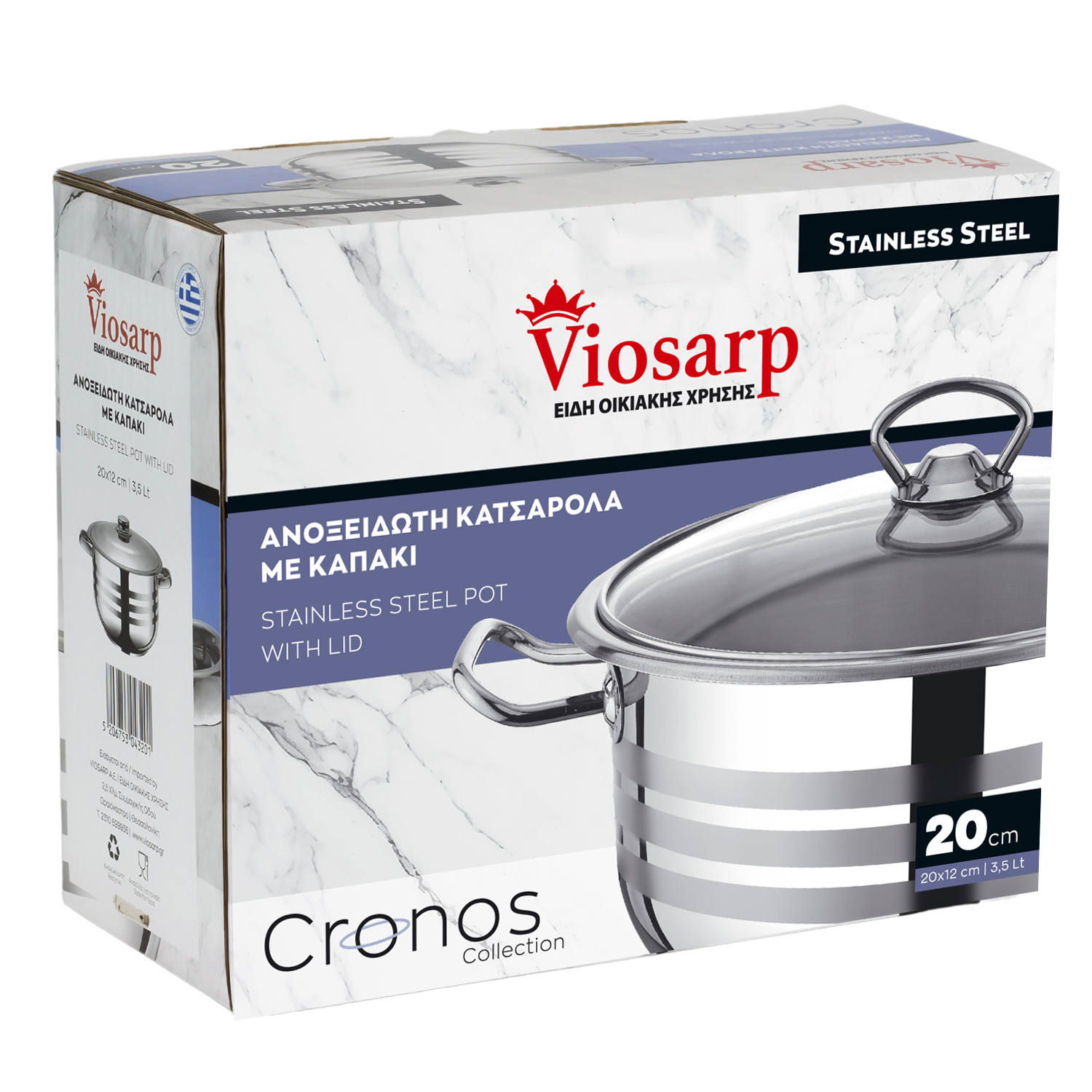 ΚΑΤΣΑΡΟΛΑ ΑΝΟΞΕΙΔΩΤΗ ΜΕ ΓΥΑΛΙΝΟ ΚΑΠΑΚΙ 20x12cm 3,5L VIOSARP