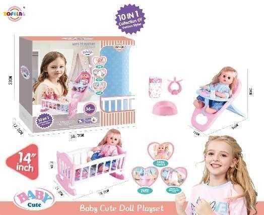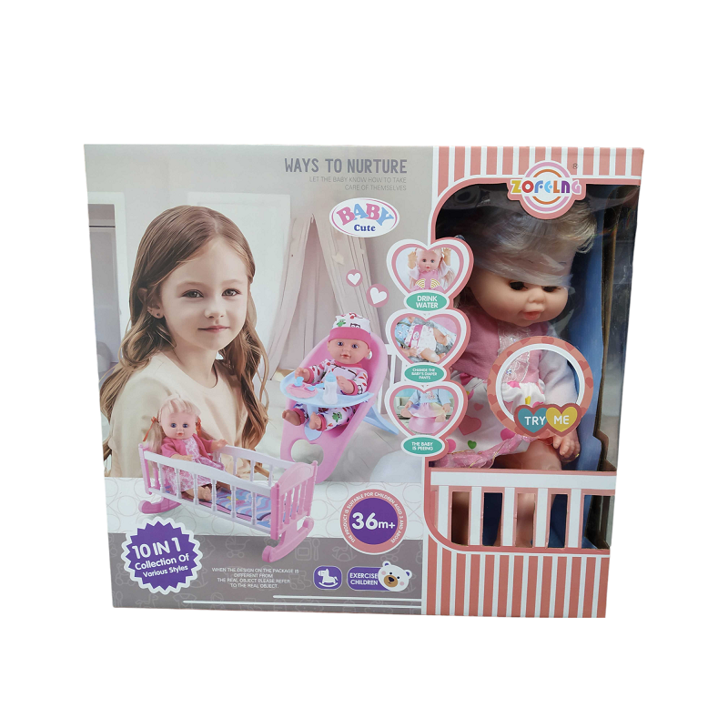 Κούκλα μωρό με πλήρες σετ κρεβατάκι, καρεκλάκι φαγητού, και αξεσουάρ για να φροντίσεις την κούκλα σου σαν ένα πραγματικό μωράκι!