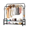 Κρεμάστρα δαπέδου μεταλλική, με 2 ράφια παπουτσιών και πλαϊνές κρεμάστρες, ιδανική ως έπιπλο εισόδου ή για την οργάνωση των ρούχων στο δωμάτιό σας.