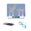 Μαγικός πίνακας ζωγραφικής που θα ξετρελάνει μικρούς και μεγάλους! Ζωγράφισε όποιο σχέδιο επιθυμείς ή επέλεξε ένα από τα σχέδια που περιέχει η συσκευασία με τους φωσφοριζέ μαρκαδόρους και τοποθέτησε τον πίνακα στη βάση LED. Θα εντυπωσιαστείς, όταν φορέσεις τα ειδικά 3D γυαλιά και ανακαλύψεις ένα καινούργιο τρισδιάστατο κόσμο. Σβήσε πάλι το σχέδιο από τον πίνακα και σχεδίασε από την αρχή!