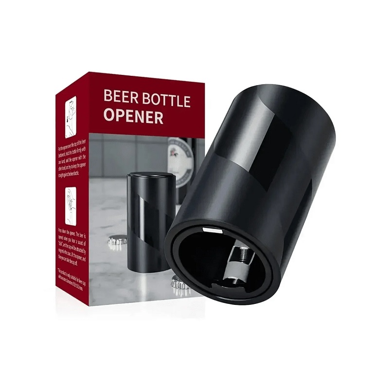 Aυτόματο ανοιχτήρι μπουκαλιών με μαγνήτη, για πανεύκολο άνοιγμα των μπουκαλιών μπύρας και αναψυκτικών με μία κίνηση: απλά τοποθετήστε το εργαλείο επάνω στο καπάκι μέχρι να κουμπώσει και τραβήξτε. Το καπάκι αφαιρείται και παραμένει μέσα χάρη στον ειδικό μαγνήτη, από όπου μπορείτε να το αφαιρέσετε χωρίς να πέσει και χωρίς να στραβώσει, ώστε να μπορείτε να το επαναχρησιμοποιήσετε.