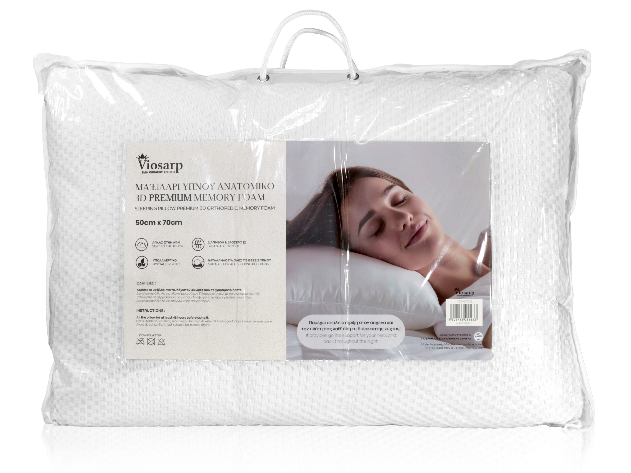 ΜΑΞΙΛΑΡΙ ΥΠΝΟΥ ΑΝΑΤΟΜΙΚΟ 3D PREMIUM MEMORY FOAM 50x70cm 1800g NoX25-QT002