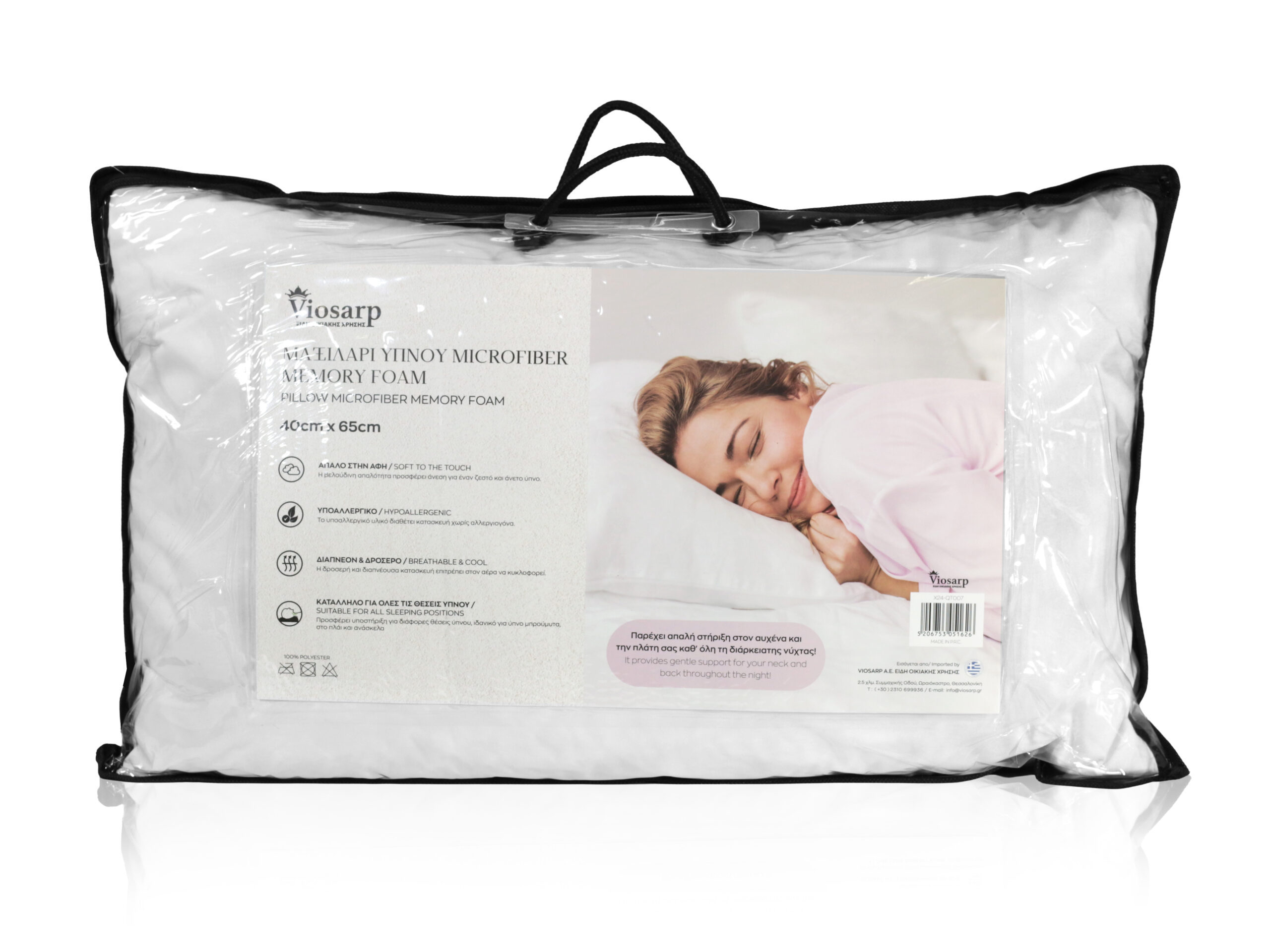 ΜΑΞΙΛΑΡΙ ΥΠΝΟΥ MICROFIBER MEMORY FOAM 40x65cm 1000g NoX24-QT007