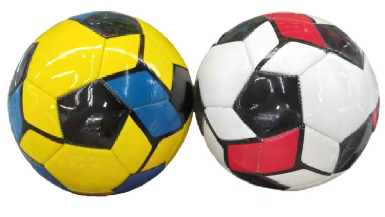 Παιδική μπάλα ποδοσφαίρου με πολύχρωμα σχέδια, κατασκευασμένη από υψηλής ποιότητας και ανθεκτικότητας υλικό.