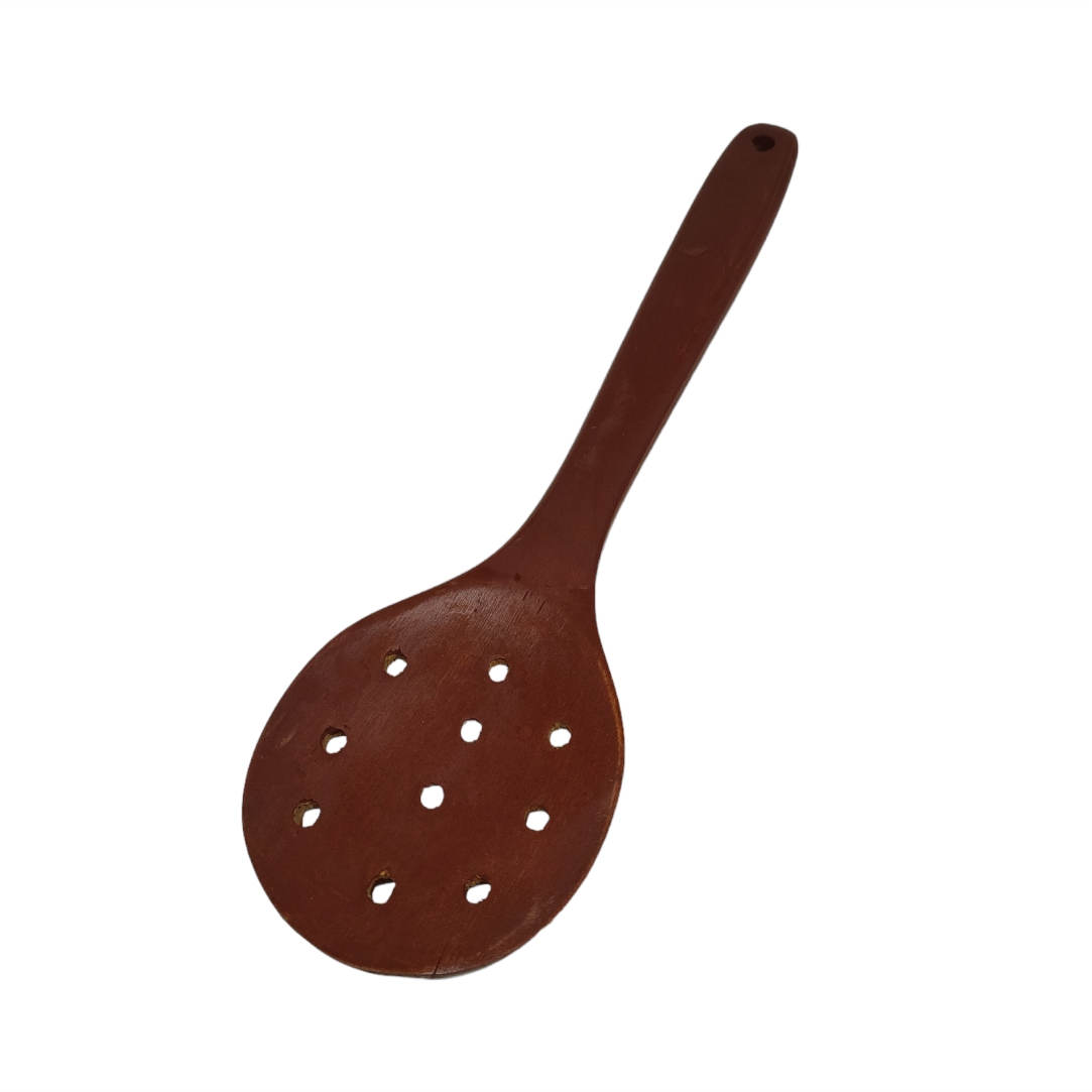 Ξύλινη κουτάλα τρυπητή. Ιδανική για να σας βοηθήσει με το μαγείρεμα. Κατάλληλη για να μην γδέρνει τα σκεύη σας. Διαστάσεις 31x9cm.