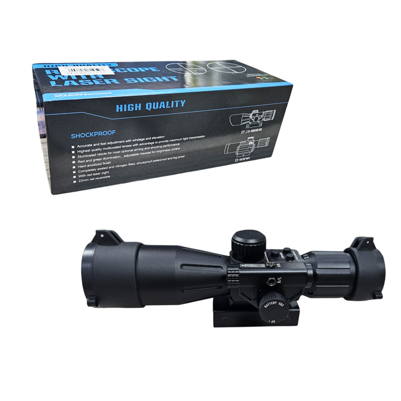 Αναβάθμισε την ακρίβεια και την εμπειρία σου στο πεδίο με το 2.5-10X40IR, ένα στιβαρό και αξιόπιστο σκοπευτικό με φωτιζόμενο σταυρό και ενσωματωμένο κόκκινο λέιζερ για κορυφαία στόχευση, ακόμα και σε συνθήκες χαμηλού φωτισμού.