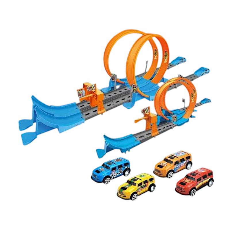 Αυτοκινητόδρομος πίστα με περιστροφή 360 μοιρών, εκτοξευτή και αξεσουάρ.