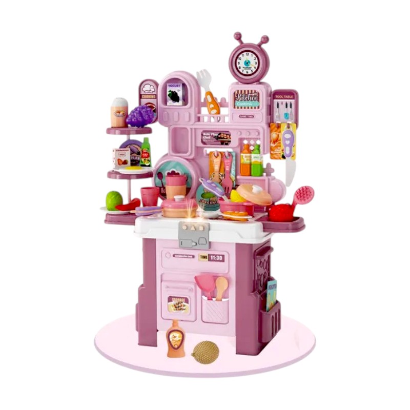 Παιδική κουζίνα με πάγκο, με πλήρες σετ αξεσουάρ μαγειρικής και φωτισμό.