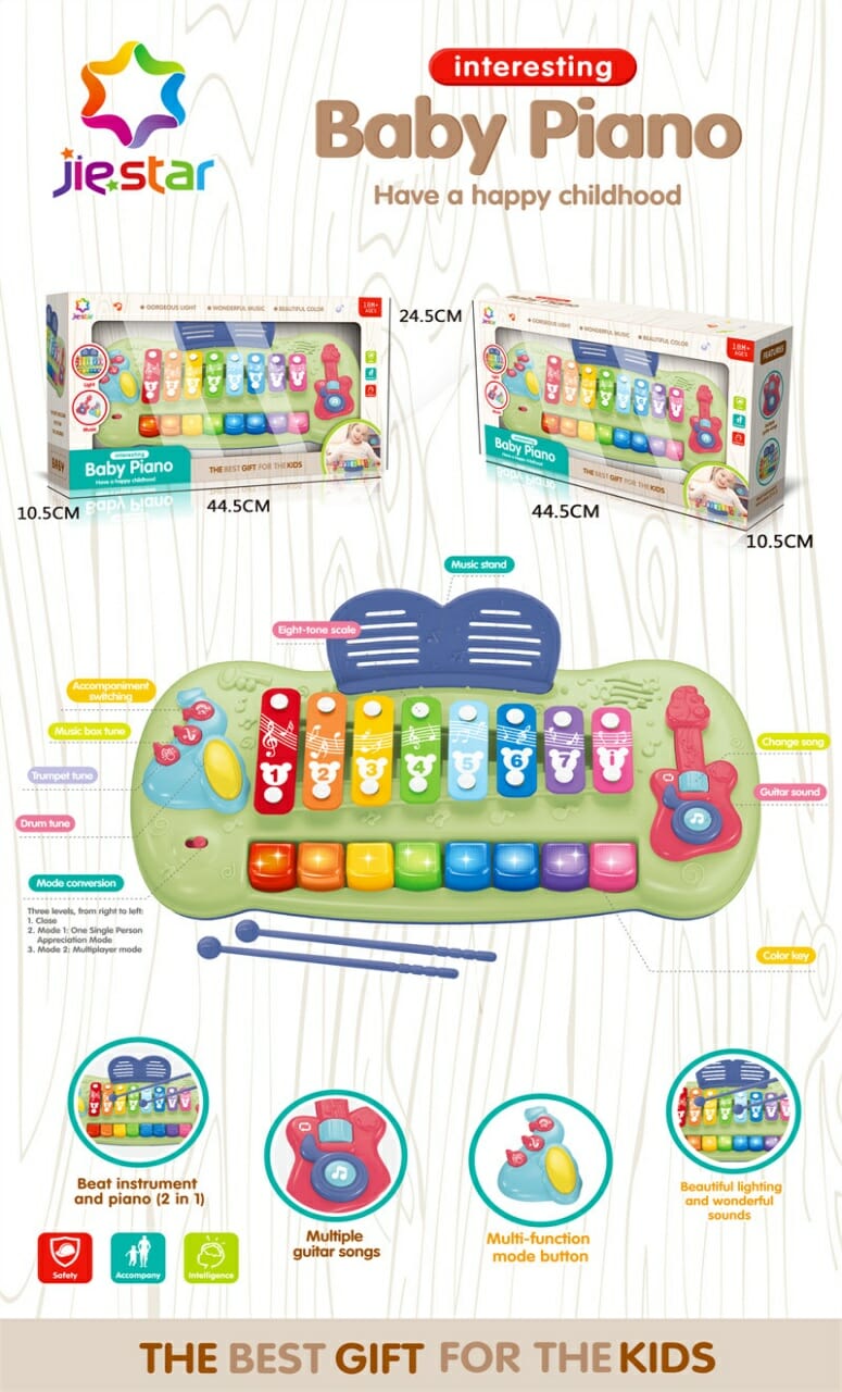 Παιδικό εκπαιδευτικό ξυλόφωνο και πιάνο, 2 σε 1, με πλήκτρα ήχων από όλα τα μουσικά όργανα, για τους μικρούς λάτρεις της μουσικής.
