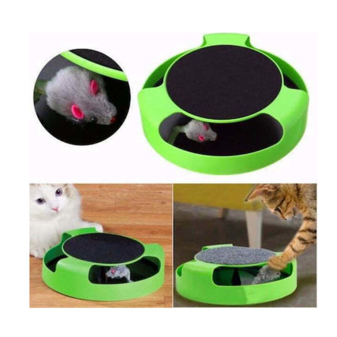 Παιχνίδι κίνησης για να διασκεδάσει η γάτα σας για ώρες, το ενσωματωμένο μικροσκοπικό ποντίκι παιχνίδι βρίσκεται στον περιστρεφόμενο άξονα. Διαθέτει τάπητα για ακόνισμα των νυχιών. Υλικό κατασκευής πλαστικό, ύφασμα και τσόχα. Διαστάσεις 25×6.5cm.