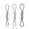 Παιχνίδι σκύλου σχοινί με κόμπους, από ανθεκτικό, μη τοξικό πολυεστέρα, ιδανικό για παιχνίδια τραβήγματος/αντίστασης ενώ παράλληλα βοηθά στην υγιεινή στόματος του σκύλου σας καθώς καθαρίζει ήπια και απασχολεί τα δόντια του. Συνολικό μήκος: 48cm.