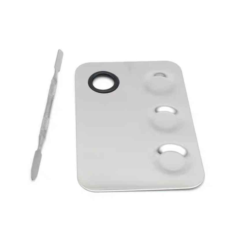 Παλέτα Ανάμειξης Μακιγιάζ Inox με Σπάτουλα – Stainless Steel Makeup Mixing Palette with Spatula