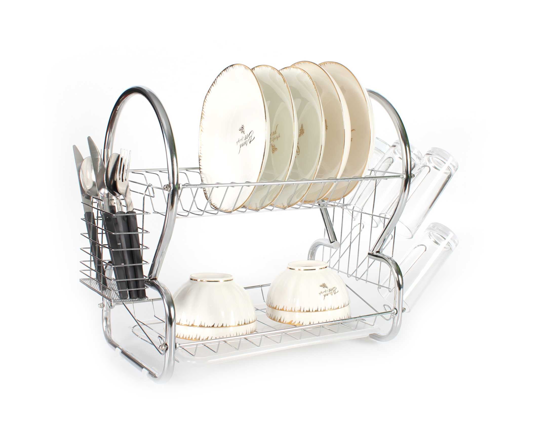 Πιατοθήκη αποστράγγισης διώροφη inox, σε πρακτικό σχεδιασμό, με θήκη μαχαιροπίρουνων.