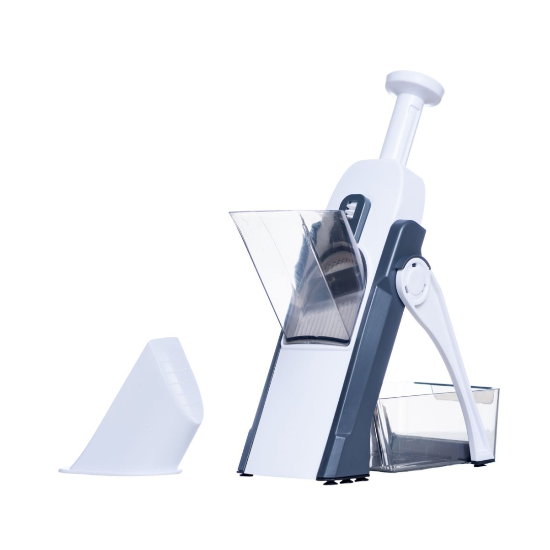 Κόφτης πολλαπλών χρήσεων για φρούτα και λαχανικά. Ιδανικό για τεμαχισμό λαχανικών. Σας διευκολύνει και σας εξοικονομεί χρόνο. Διαθέτει δοχείο συλλογής τροφίμων.