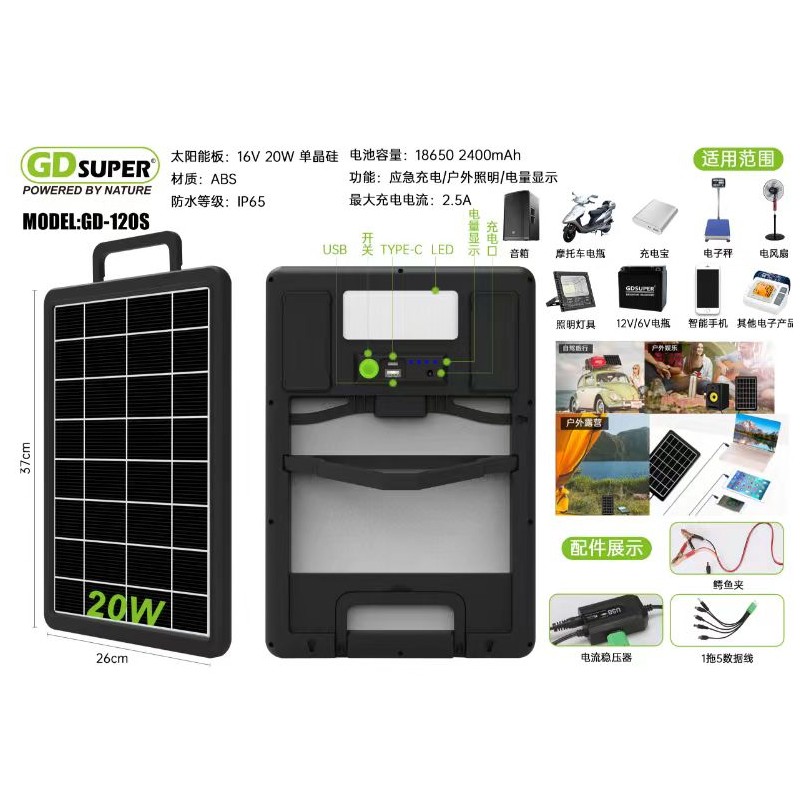 ΠΟΛΥΛΕΙΤΟΥΡΓΙΚΟ ΠΑΝΕΛ 20W ΦΟΡΤΙΣΗΣ ΣΥΣΚΕΥΩΝ GD-120S