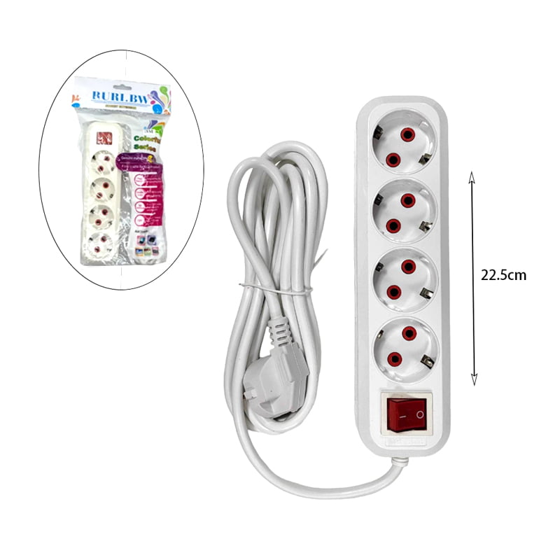 Πολύμπριζο 4 Θέσεων με καλώδιο 3m και διακόπτη Ruri.BW – 4 power socket extension