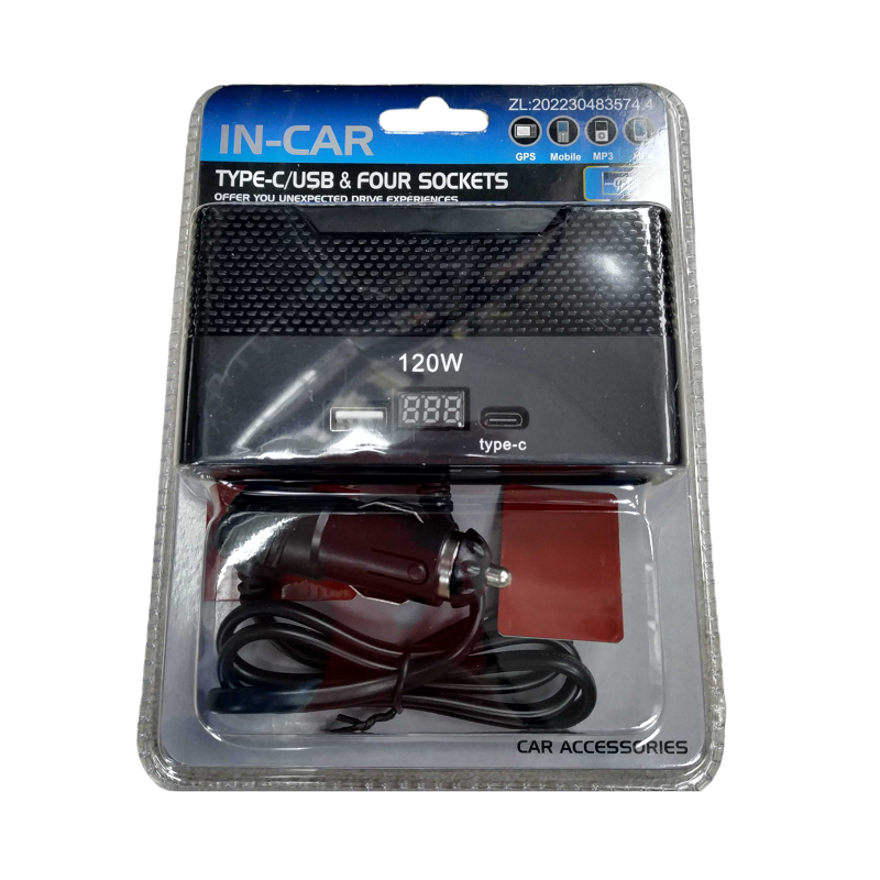 Πολύπριζο φόρτισης αναπτήρα αυτοκινήτου με 4 παροχές – USB+Type-C – CD080462 – 804629