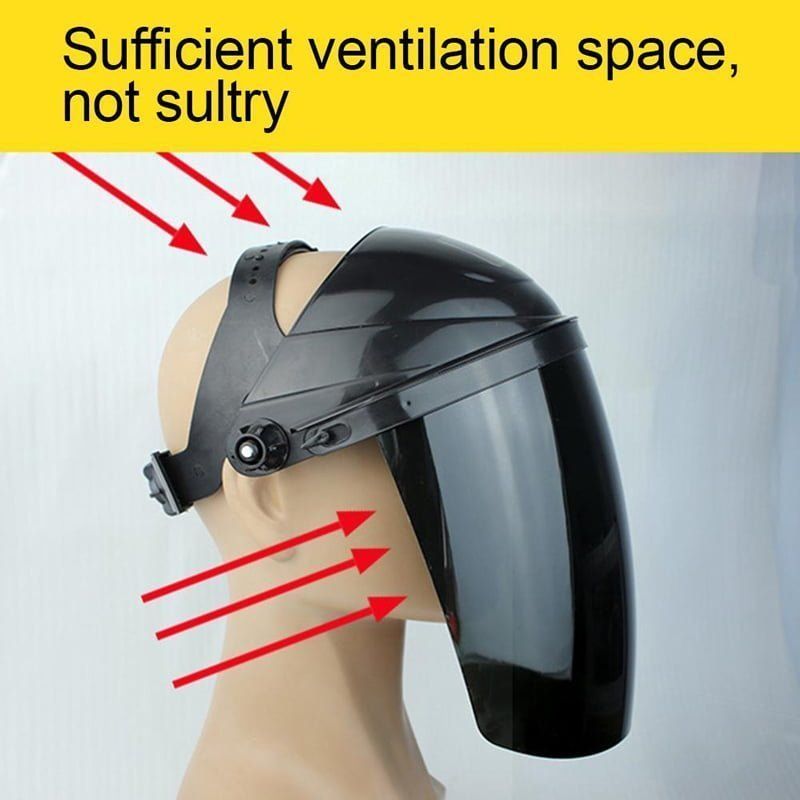 Διαθέτει διάφανο σκούρο προστατευτικό πολυκαρβονικού τύπου, ανθεκτικό σε χτυπήματα και πιτσιλίσματα, ενώ η ρυθμιζόμενη ζώνη επιτρέπει τέλεια εφαρμογή στο κεφάλι για άνετη πολύωρη χρήση.