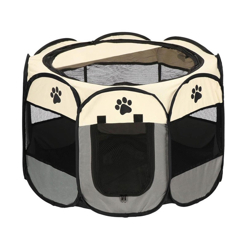 Αναδιπλούμενος υφασμάτινος χώρος σε οκταγωνική μορφή, κατάλληλος για σκύλους, κουτάβια, γάτες και μικρά ζώα. Ο χώρος αυτός είναι ιδανική λύση για τους ιδιοκτήτες κατοικίδιων, ειδικά όταν χρειάζεται να δημιουργηθεί ένας ασφαλής χώρος για τα ζώα σας. Μπορεί να χρησιμοποιηθεί τόσο μέσα στο σπίτι όσο και σε εξωτερικούς χώρους.