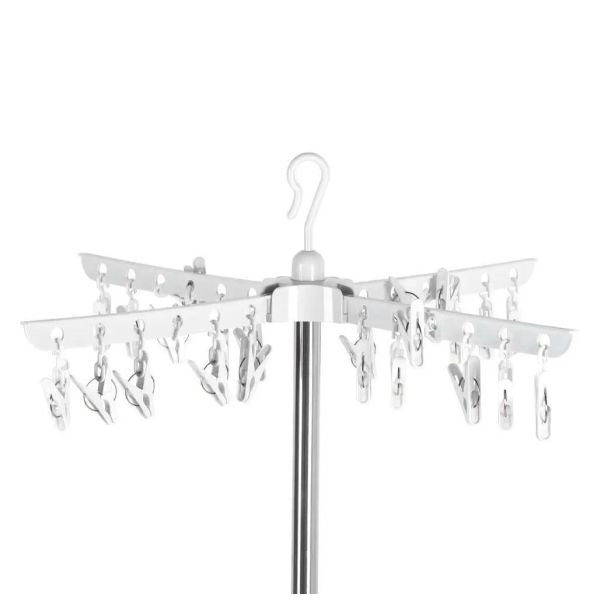 Με την πρακτική αυτή κρεμάστρα θα στεγνώσετε γρήγορα τα ρούχα σας ακόμα και μέσα στο σπίτι όταν ο καιρός δεν σας ευνοεί, χωρίς να πιάνει πολύ χώρο μπορείτε να απλώσετε με ευκολία εσώρουχα, κάλτσες, πετσέτες, φανέλες, κ.λ.π. Η κρεμάστρα ρούχων έχει ύψος 1,70 εκατοστά και 3 περιστρεφόμενα 360 μοίρες επίπεδα στα οποία, στο πρώτο επίπεδο υπάρχουν πιαστράκια για τις κάλτσες ή τα εσώρουχα, στο δεύτερο και τρίτο επίπεδο μπορείτε να κρεμάσετε πετσέτες και ρούχα. Πρακτική και οικονομική λύση για άπλωμα ρούχων, οργάνωση, ακόμα και για το σιδέρωμα μπορείτε να την μεταφέρεται όπως είναι με τα ρούχα στο χώρο που σιδερώνετε.