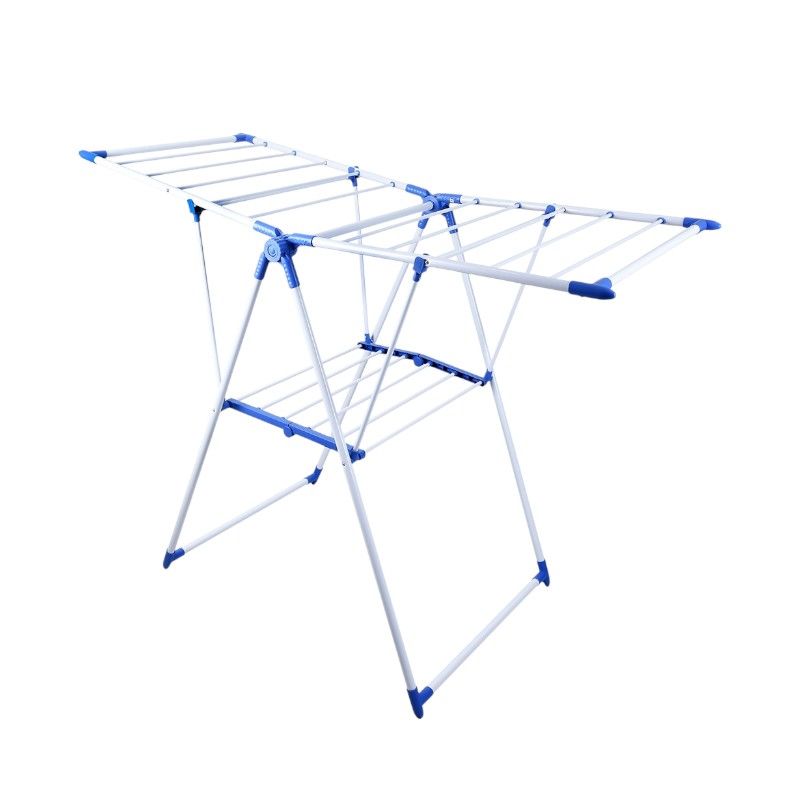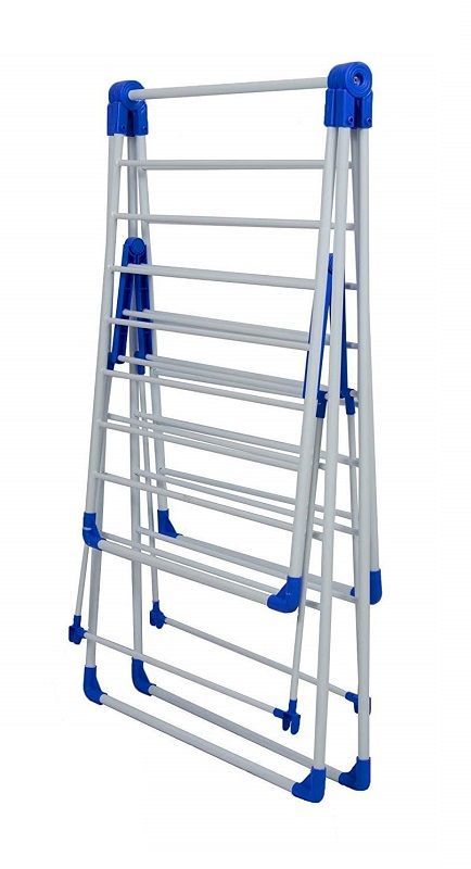Πρακτική απλώστρα ρούχων δαπέδου με μεταλλικό σκελετό και πολλαπλές θέσεις ρούχων.