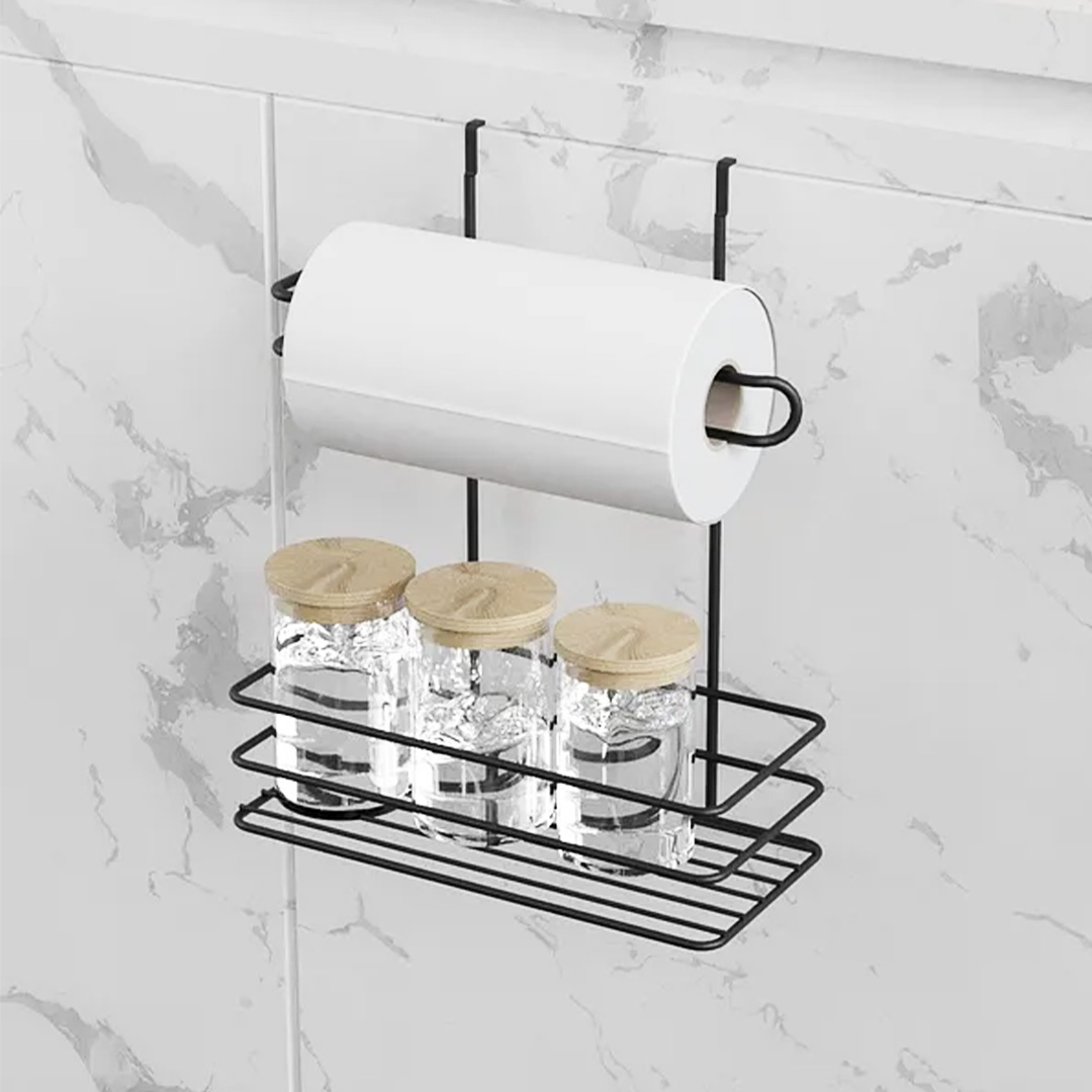 ΡΑΦΙ ΜΕΤΑΛΛΙΚΟ ΜΑΥΡΟ ΚΡΕΜΑΣΤΟ ΓΙΑ ΝΤΟΥΛΑΠΙ ΜΕ ΘΗΚΗ ΓΙΑ ΧΑΡΤΙ ΚΟΥΖΝΑΣ SA020-B