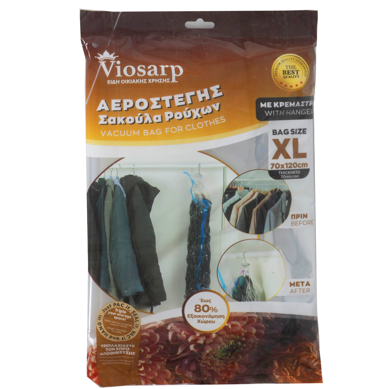 ΣΑΚΟΥΛΑ ΡΟΥΧΩΝ ΑΕΡΟΣΤΕΓΗΣ ΜΕ ΚΡΕΜΑΣΤΡΑ 70x120CM