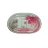 Σαπουνοθήκη κατασκευασμένη από διάφανο ακρυλικό υλικό. Διατηρεί το σαπούνι σας ελαφρώς ανυψωμένο για να στεγνώνει γρηγορότερα αυξάνοντας τη διάρκεια ζωής του. Είναι διάφανη, με νερό και λουλούδια στο εσωτερικό της. Διαστάσεις 13x10x3cm.