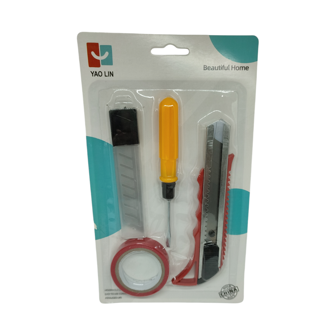 Σετ εργαλείων 4 τεμαχίων. Περιλαμβάνει χαρτοκόπτη, κατσαβίδι και ταινία.