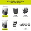 Διαθέτει πλήρες σετ με 5 εξαρτήματα για κούρεμα, ξύρισμα, trimming και περιποίηση μύτης/αυτιών/φρυδιών.