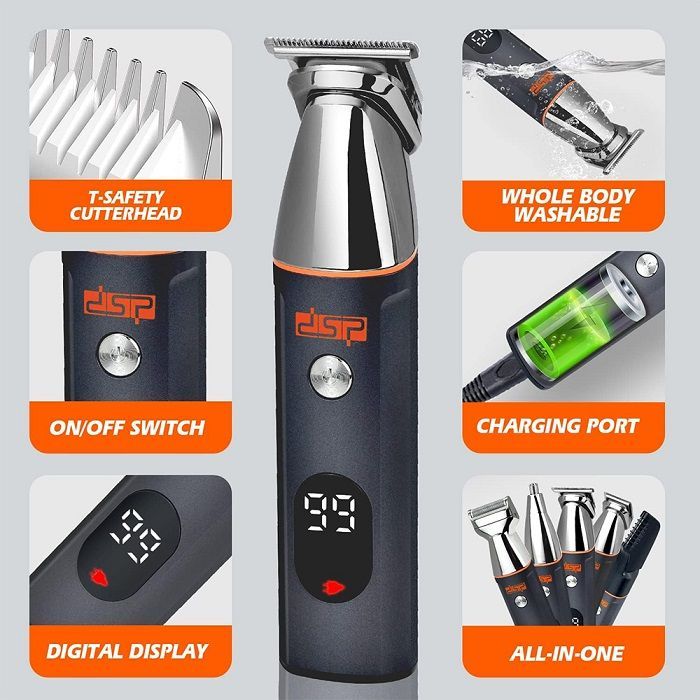 Η Επαναφορτιζόμενη κουρευτική μηχανή 5 σε 1 της DSP είναι μια ολοκληρωμένη λύση για την περιποίηση των μαλλιών, του προσώπου και του σώματος.