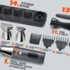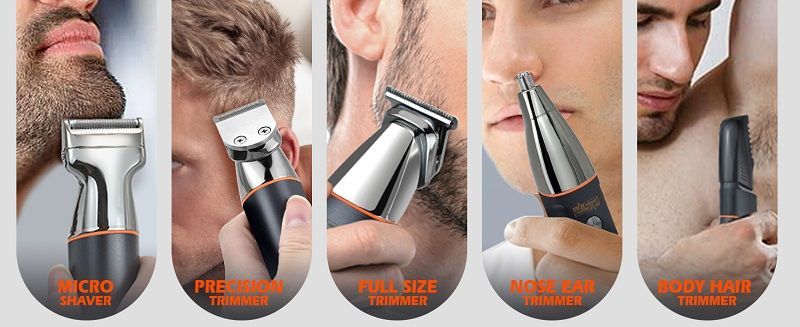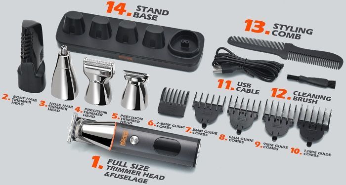 Διαθέτει πλήρες σετ με 5 εξαρτήματα για κούρεμα, ξύρισμα, trimming και περιποίηση μύτης/αυτιών/φρυδιών.