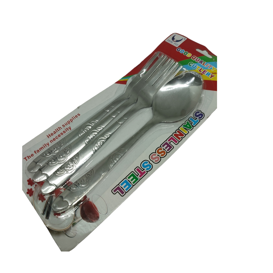 Σετ μαχαιροπίρουνα φαγητού από ανοξείδωτο ατσάλι. Περιλαμβάνει 3 πιρούνια και 3 κουτάλια.